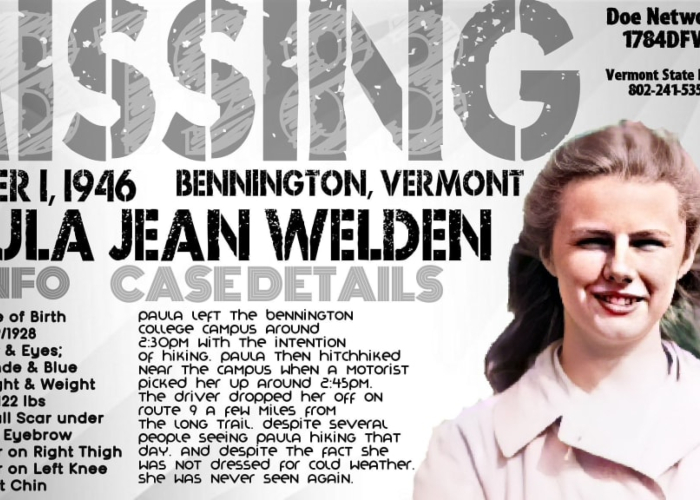 In 1946, college student Paula Welden left her dorm at Bennington College to go hiking on Vermont’s Long Trail—and never returned. Witnesses spotted her on the trail, but she vanished without a trace, sparking one of the largest searches in state history.