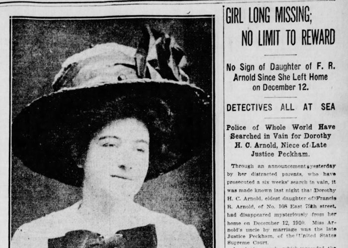 In 1910, wealthy New York socialite Dorothy Arnold left her home to buy a dress—and never returned. She was 25, educated, and aspiring to be a writer. When she didn’t come home, her influential family launched a private investigation, trying to keep things quiet.