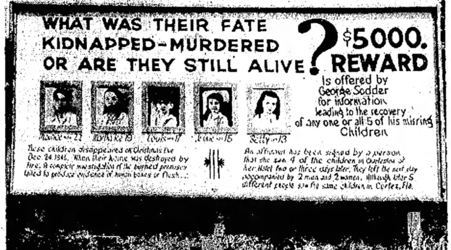 On Christmas Eve 1945, a fire engulfed the Sodder family home in West Virginia. Five of the ten children were never seen again. Their remains were never found in the rubble, leading some to believe they hadn’t died in the fire at all, but were taken.